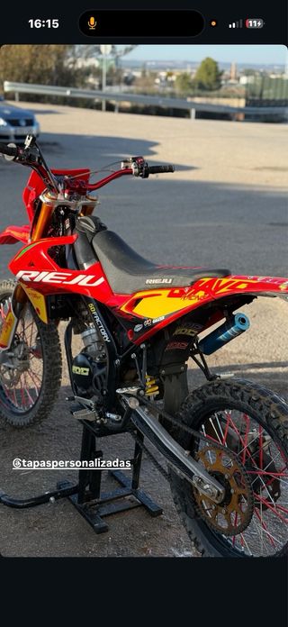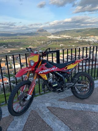 En muy buen estado general y revisada de absolutamente todo,da gusto cogerla va muy muy bien. Lleva un yasuni homologado,17,5 dellorto,filtro de potencia y portamatriculas homologado Entrego con itv recién pasada Pintada en gris liso para poner pegatinas personalizadas a tu gusto.Perfecta de motor(recién reparado completo)suspensiones en muy buen estado,sin pérdidas de aceite.Kit de arrastre nuevo,ruedas al 90% No es la típica moto que tienes que gastarte un dineral después de comprarla,por estar mal toqueteada y con piezas cambiadas que no son las suyas.Lista para usarla,sin fallos y todo legal. Rieju mrx,mrt,smx,beta rr50,rrt,art