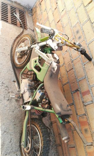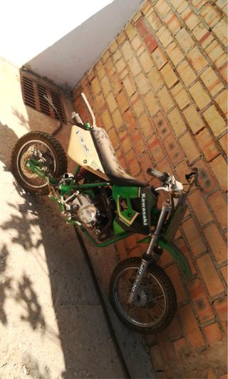 Minipitbike Kawasaki KX 85 en colores beige y verde. Lleva varios años parada. Perfecta para iniciarse en el mundo de las motocross, para niños, e incluso para meterla en circuito. No quiero cambios.