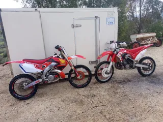 Se venden dos Honda CRE 250 de enduro matriculadas del año 99 Para más información preguntar sin compromiso Precio por una 3500€ Precio por las dos 6000€ Ambas sin ITV a una le caducó en enero del 2026 y a otra en el 2025. Funcionan a la perfección Entrego dos cajas llenas de piezas nuevas y usadas al que se las lleve las dos, escapes de casa, kits de plásticos, pegatinas, porta matriculas original.... Cambio por algo de mi interés Kawasaki Husqvarna motocross 125 450 crf exc kx kxf rm rmz beta Rieju 300 yz yzf trial tm excf sx sxf procircuit
