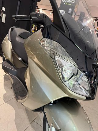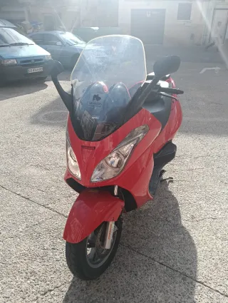 Moto tipo scooter de color gris. Incluye un maletero en la parte trasera para mayor capacidad de almacenamiento. - Diseño moderno y aerodinámico. - Parabrisas alto para protección. - Asiento cómodo para dos personas. - Asiento tapizado. - Batería nueva. - Itv hasta Noviembre 27 - Funciona perfecta la vendo por cambio de cilindrada. - Duerme en cochera, uso a diario sin ningún problema.