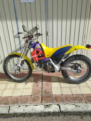 Aprilia climber en buen estado para los años que tiene. Del año 91 6 marchas Motor repasado Bujía nueva Aceite nuevo Líquido frenos nuevo Refrigerante nuevo Carburador repasado y limpiado con ultrasonido Ruedas en buen estado No tiene papeles No cambios No se regala ## enduro cross trial