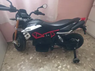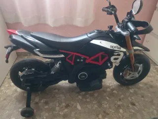 Moto eléctrica infantil Aprilia Dorsoduro. Prácticamente sin uso,muy buen estado. - Diseño deportivo en color negro. - Motor 12v - Detalles en rojo y blanco. - Ruedas de goma. - Asiento cómodo.