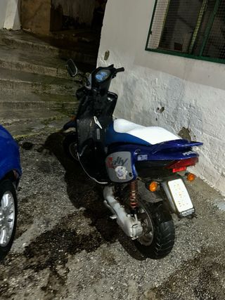 la moto esta nueva con el motor recien echo de aerox,pastas recien pintadas sin ningun rallajo y doy algunas piezas aparte de estas Motor: - Top rosa culata culatin - Cigüeñal barikit competicion - 21 dellorto - Carrera 16 - Caja laminas malossi - Variador malossi rodillo gordo - Semipolea Stage 6 - Embrague polini 3g regulable - Correa polini Estetica: - Suspension malossi - Llanta trasera de aprilia rally - Bifaro delantero y trasero negro - Neumaticos diablo rosso semislick - Disco trasero polini NO TIENE ITV