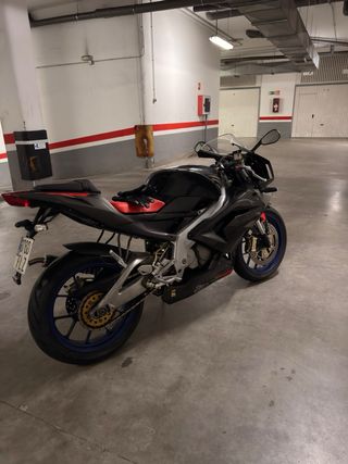 Aprilia RS 125 2T en muy buen estado. Se vende Aprilia RS 125 de 2 tiempos del 2010 . La moto funciona perfectamente y está muy bien cuidada. Lleva instalado un kit Italkit 140cc y un escape Giannelli, ambos con menos de 3.000 km de uso tiene 27.000km Los dos neumáticos están al 90% Es una moto muy divertida y con muy buenas prestaciones se puede llevar con el A1 esta limitada a 11kw en papeles. No acepto cambios.