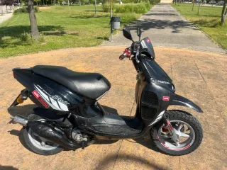 Scooter Aprilia Rally 50 en color negro. - Diseño deportivo. - Asiento cómodo. - Ruedas todoterreno. - Documentaciom al dia - Itv hasta dic/2027