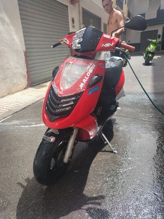 Scooter Aprilia SR Motard 125 Moto muy cuidada y recién revisada. Se entrega lista para usar. 🔧 Mantenimiento recién hecho: • Cambio de aceite y filtro • Filtro de aire nuevo • Carburador limpiado • Toma de admisión nueva • Casquillos nuevos • Manetas de freno nuevas • Puños nuevos • Cable y funda de acelerador nuevos • Tubo de admisión al carburador nuevo • batería nueva 🧾 ITV en vigor y documentación al día, Arranca perfecto y funciona correctamente. Consumo ridiculo la única pega que tienes es un ruido en el escape, el anterior dueño supongo que rompería el tope o algo y lo dejó dentro, tiene algunos roces.