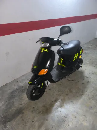 Piaggio Zip de 49cc en color negro. - Diseño deportivo con detalles amarillos. - Ruedas negra tiene ITV en vigor hasta 2027 aranca a batería y a patada va muy bien totalmente de casa