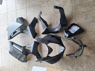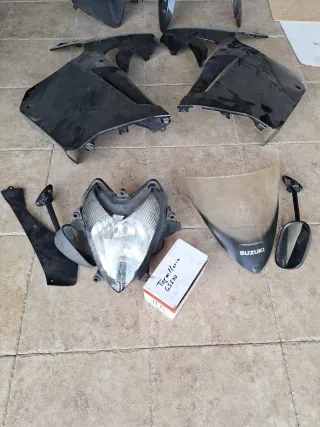 Conjunto de carenados para Suzuki GS500f. Lo compré para ponerlo en mi gs500 pero al final la vendí de serie. Esta completo, incluye todos los soportes y tornilleria junto con la araña. Se encuentra en perfecto estado, sin ramas ni fisuras, esta perfecto para llegar y montarlo. Es original de gs500f pero se puede montar en gs500 también. Consta de: - Carenado frontal superior. - Carenados laterales. - Faro delantero. - Pantalla/cúpula. - Espejos retrovisores - Araña - Soportes originales - Tornilleria