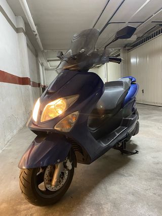 Scooter Yamaha Majesty 125 en color azul. Se vende por cambiar a moto superior. - Distintivo ambiental sacado. - Parabrisas alto para mayor protección. - ITV hasta 12/26 Cilindro nuevo, variador, bomba de agua, pastillas de freno, neumáticos ,bomba de freno trasero, asiento tapizado. todo cambiado en menos de un año. Entrego facturas. Debido a todos los cambios está prácticamente con todo el interior nuevo. facturas por más de 680€ Siempre duerme en garaje. *Marca algo más de 15.000 kms pero tendrá más ya que se rompió el cable del cuenta kilómetros y velocímetro y no se cambió, no se los kms reales. Acepto prueba mecánica.