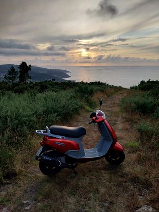 Moto Piaggio de color azul, en buenas condiciones generales. - Diseño moderno y aerodinámico. - Asiento cómodo para el conductor. - Con todas las revisiones al día. - Incluida correa variador con kit completo.