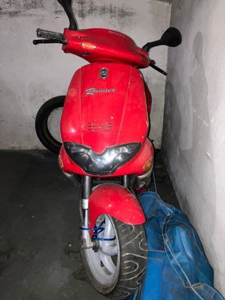 Moto Gilera Runner 50cc de color rojo y gris. Ideal para moverse por la ciudad. Motor reparado por completo. Rodamientos cambiados. SIn ITV - Diseño deportivo. - Ruedas de aleación. - Asiento cómodo.