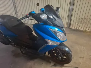Scooter de color azul con un diseño moderno y deportivo. - Maletero negro en la parte trasera. - Se usa a diario - ITV recién pasada hasta 28 Diciembre del 2027 - Aunque ya tiene km, se hizo motor hace dos años así que ,de momento va muy bien.