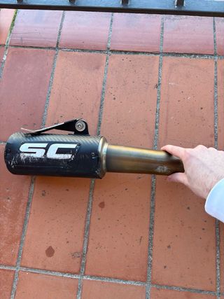Cola de escape SC Project con acabado en carbono. Diseñada para mejorar el sonido y la estética de tu moto. - Material exterior en carbono - Detalle del tubo soldado -Única rascada de la placa de Sc Project (cambiando la placa descuento 50€ que es lo que vale oficial). ⚠️Venta Urgente⚠️