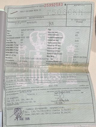 Harley-Davidson Sportster XL 883, del año 2005, pegatina B, tiene 164000 km, esta en funcionamiento, lo único que a veces se engancha la primera. Lleva amortiguadores cortos y horquilla ancha y escapes, sonido genuino Harley.