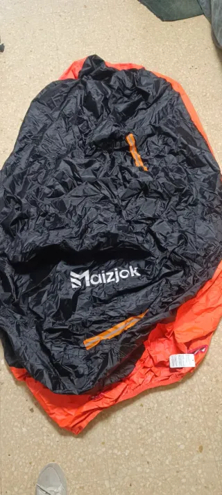 Funda protectora para moto de la marca Maizjok. Diseñada para ofrecer protección contra los elementos. - Color negro con detalles naranjas. - Material resistente.