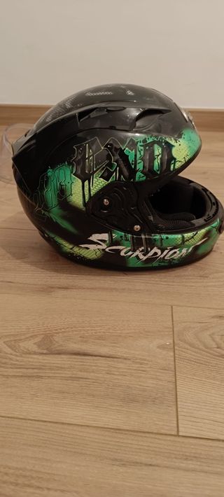 Casco de moto Scorpion, en perfecto estado. - Diseño deportivo. - Color negro y verde. - Talla L .