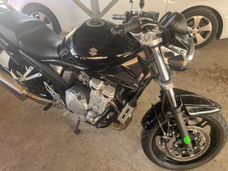 Moto Suzuki Bandit 650, limitada para carnet A2. Modelo icónico de Suzuki. - Color negro brillante. - Diseño naked. - Motor potente y fiable. Kit de arrastre nuevo. Neumaticos nuevos. Muy cuidada y al dia de todo Se vende por cambiar de estilo de moto Va como el primer dia 108.000 km Se puede ver en taller en barcelona Esta alli para venderla Potencia total deslimitada 85 cv.
