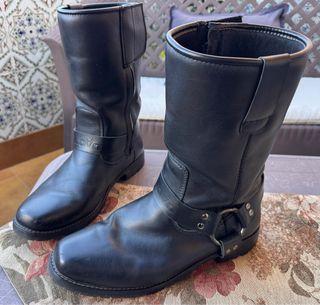Botas de moto altas de cuero de la marca Lovo. Son del numero 45 - Material: Cuero. - Color: Negro. - Cierre de cremallera lateral. - Correa decorativa con hebilla metálica.