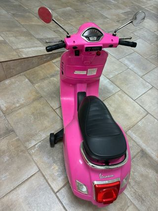 Divertida Vespa de juguete en color rosa, ideal para los más pequeños. Se encuentra en buen estado general. - Diseño inspirado en Vespa. - Color rosa brillante. - Requiere cambio de batería para su funcionamiento.