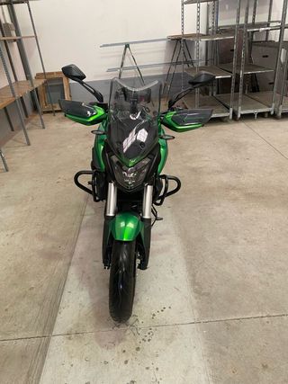 Motocicleta Bajaj Dominar 400cc en color verde y negro. - Diseño deportivo. - Asiento doble. - Guardabarros trasero. 2250km TRANSFERENCIA NO INCLUIDA Tiene 11 meses y aun le quedan 4 años de garantía