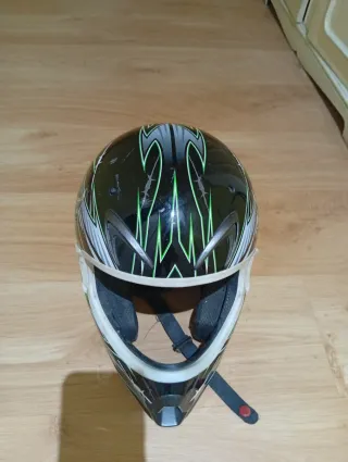 casco moto con rascadas en la visera, por lo demás está impecable. la visera se puede cambiar. se entrega con la funda. talla M