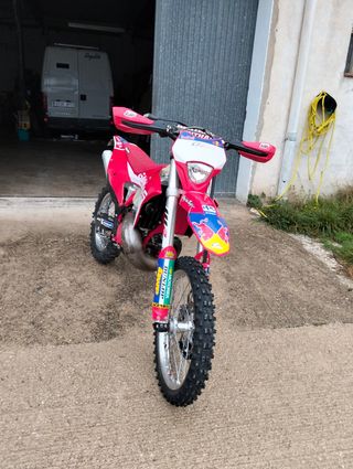 KTM 125 EXC | Año 2012 Se vende KTM 125 EXC matriculada el 21/09/2012. La moto se encuentra en un estado excepcional, con un kilometraje de 6.500 km. Detalles y equipamiento Mantenimiento: Recién salida del taller con una inversión de 1.200 € en su puesta a punto. Incluye ruedas nuevas. ITV: Válida hasta el 03/01/2027. Piezas incluidas: Se entregan todos los componentes necesarios para pasar la ITV, junto con un juego de plásticos de recambio. Equipación de protección: Se incluye una equipación completa, compuesta por casco, gafas, chaleco de protección, rodilleras y botas.