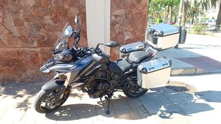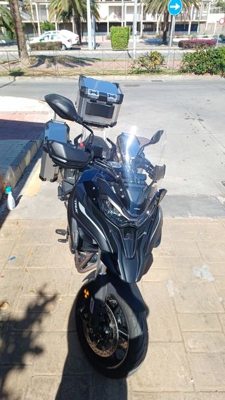 Moto Benelli TRK 702 en excelentes condiciones. SOLO 14500KM GARANTIA OFICIAL HASTA 2029 Hablame mando video. -Solo 5900e. La vendo por no usar -Revisiones casa oficial, 1000, 7000 y la de los 13000. - Incluye maletas laterales y baúl superior. -cupula alta y baja de regalo - Impecable estado estético. - Prácticamente nueva con rodaje hecho y 3 revisiones hechas te ahorras 450e en revisiones y lista para rodar si esperas de concesionario