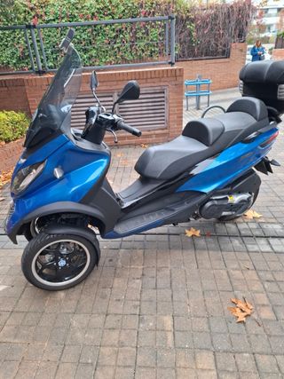 Scooter Piaggio MP3 de 500cc en color azul. -Ideal para carnet B - Tres ruedas para mayor estabilidad. - Parabrisas alto para protección. - Baúl trasero para almacenamiento. La moto se encuentra en Las Rozas en Madrid.