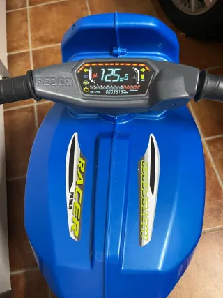 Se vende Vespa eléctrica para niños de 6V, en perfecto estado y casi sin uso. - Color rojo. - Licencia Vespa. - Velocidad de 3 km/h. - Incluye luces LED y radio FM. - Conexión USB y MP3.se a usado 3 veces contadas,3 cargas d bateria,es súper divertida para los más peques d la casa,tiene luz delantera led y radio o para poner un USB con musica,y para ir hacía detrás solo ai q darle un botón y va hacía atras sin bajarse,tengo 2 iguales, algún mini roce q ni se aprecia,en Amazon m costaron casi 150€yo cada una 80€,algo negociable,un regalo perfecto para éstas navidades!!!talla perfecta de 3 a 6 años
