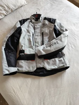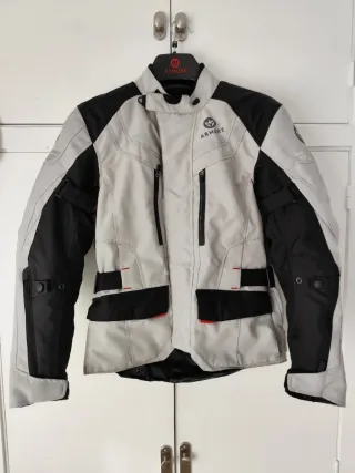 Chaqueta de cordura de la marca Armure. Talla xs Poco uso. - Diseño en gris y negro. - Cremalleras frontales y en bolsillos. - Cierre de cuello ajustable. - Puños con velcro. - Bolsillos frontales con solapa. - Forro interior desmontable (invierno/verano)
