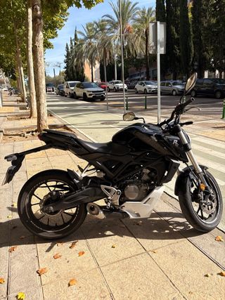 Moto Honda CB125R en color negro. - Diseño deportivo y moderno. - Ideal para moverse por la ciudad con agilidad. -ITV recién pasada sin ningún problema -Pastillas de freno delantera y traseras nuevas. -kit de gomas recién puesto. -Año 2019 - Actualmente tiene 52.000km -Aceptó cambio por moto de mayor cilindrada sin posible para el A2