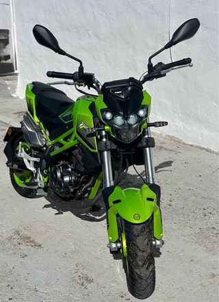 Se vende moto Benelli TNT 125 Año 2021. en muy buen estado, como salida de concesionario, solamente 5.000km. Siempre en garaje, apenas uso. ITV hasta 2027. En llamativo color verde. - Diseño deportivo y moderno. - Manillar ancho para un mejor control. - Doble escape deportivo.
