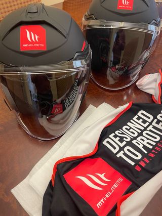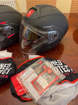 Se venden dos cascos Jet de la marca MT. - Talla M - Talla L - Incluyen visera - Diseño moderno Negro mate Prácticamente nuevos a penas 3 meses, sin uso por venta de moto Con fundas y adhesivos Se pueden vender por separado 60€ cada uno