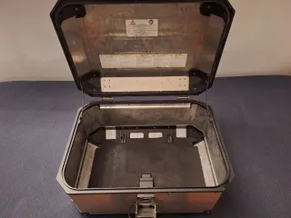 Top case Givi Outback Trekker de 58 litros. Fabricado en aluminio, es ideal para viajes largos y para ciudad. - Capacidad de 58 litros. - Caben dos cascos perfectamente - Acabado en aluminio. - En buen estado, no incluye la base. - Dos llaves
