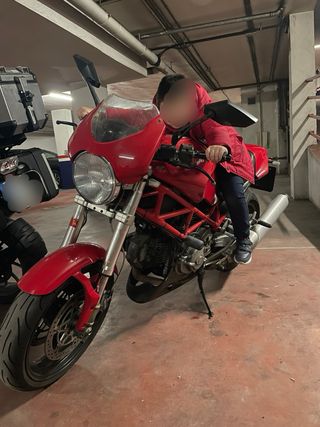 Moto Ducati Monster 620 i.e de color rojo con multitud de extras: -Torretas Rizoma -Manillar Rizoma -Intermitentes Led rizoma -Tegolino de carbono ducati performance -Quilla de carbono Carbon 4 Us -Tapa del deposito de aceite metalica -Puños Rizoma -Tirante de amortiguador regulable en altura -Protector de piñón de ataque metálico Siempre en garaje. Mantenimientos al dia y con ITV en vigor, todas las modificaciones están homologadas, no hay que modificar nada en el momento de pasar la ITV. 35.000km Regalo retrovisores rizoma, guantes ducati y botas puma de la talla 42 No admito cambios ni ofertas absurdas