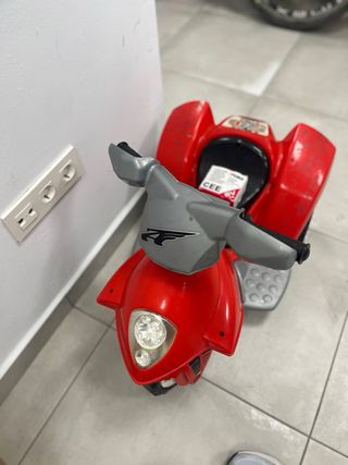 Moto de batería para niños, color rojo. - Diseño deportivo. - Ruedas resistentes. - Detalles en plateado.