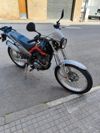 moto trial-enduro-paseo-escursion de 125cc, año 2013, 6.600km. Motor dócil ideal para la iniciación del off Road. monta el motor "más que probado" Yamaha YBR 4t. Tiene arranque electrico, llave🔑 y sillín desmontable. Utilizada por mi pareja para dar paseos por el monte. Mantenimientos al día, aceite, batería y bujía nuevos. Se entregará con ITV recién pasada. beta alp, sherco long ride