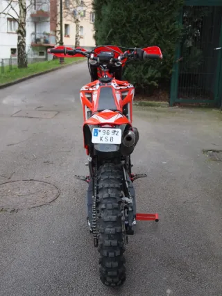 Cilindro nicasilado, solo con dos salidas, lleva horquilla de la beta rr de 48 y amortiguador, protector de bufanda, carter y bieletas, basculante,tapas de motor. Electroventilador, neumáticos al 80% con cámara reforzada, kms 10700 y horas 437. Mejor ver y probar. Ideal para gente de poca altura.Beta de finales del 2018.