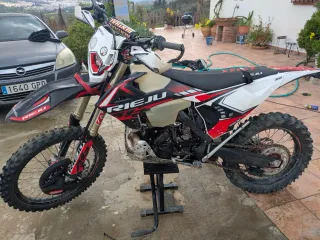 Moto Rieju MR 300. Segundo propietario. La compré con 60h y actualmente 100h. Cargada de extras a tope - protector escape y bieletas - protectores motor, basculante, puntas horquilla, radiadores, discos freno, paramanos etc. - electroventilador - foco led (y original) - culata s3 - bieletas koubalink -3mm - botón auxiliar arranque - más extras que seguro se me olvidan -caja con escape para ITV y accesorios completa (ITV pasada para dos años) Vendo por cambio de modalidad no me interesan otras enduro. No hay otra moto con estos extras. Podría interesar trial como parte de pago. Sherco beta Husqvarna gasgas ktm