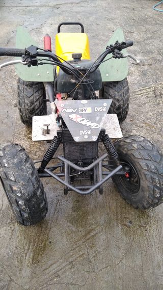 Se vende quad con motor de una derbi variant start 5. El motor está perfectamente y puede sin problemas con dos personas adultas. Frenos delanteros de zapatas y trasero de disco marca brembo. Sin documentación. No se aceptan cambios.Quad niño, minimoto,…
