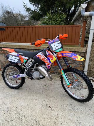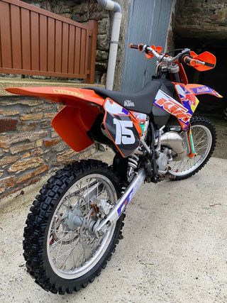 KTM SX 125 del 2002 con SMARTCARB VER TODAS LAS FOTOS. Moto con pistón de 35h, aceite cambiado hace 5h. SMARTCARB 36mm, bomba de embrague Baremo 9mm, caja de láminas VFORCE 3, bufanda FMF Fatty, piñón, goma trasera nueva, mousse en ambas ruedas, corona y cadena nuevo... E infinidad de mejoras. La suspensión es dura, perfecta para pistear, pero necesita mantenimiento si se quiere usar por campo. La moto está como en la última foto, en las primeras no se habían cambiado las piezas. No la regalo, por favor, gente interesada, escucho ofertas e incluso cambios de mi interés. No me urge venderla. Doy información y videos por privado