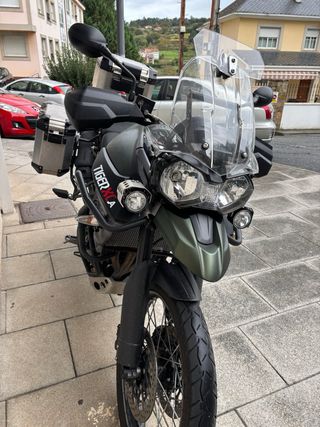 Moto Triumph Tiger 800 XCA en color verde. 31.000km , Noviembre del 2017. - Maletas laterales y superior incluidas. - Defensas -Luces antiniebla led (homologadas en ficha técnica) - Control de velocidad - Asientos calefactables - Rueda trasera con 500 km - Libro de mantenimiento con revisiones selladas - 31.000 km