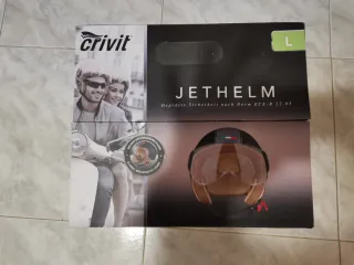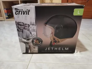 Casco tipo jet de la marca Crivit, talla L (59-60 cm), nuevo sin usar en su correspondiente caja. Ideal para desplazamientos urbanos. - Visera clara y resistente a arañazos. - Mecanismo de visera de múltiples posiciones. - Cumple la norma ECE-R 22.05.