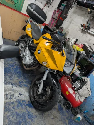 Moto BMW F800s de color amarillo. - Incluye maletas originales BMW con llave de la moto -Siempre en garaje - Incluye maleta trasera 46L quick release - Muelles Ohlins de serie - Akrapovic de titanio de serie - Ordenador de a bordo - Tapa colon trasero original - ABS Etiqueta C Tiene todos los extras opcionales salvo la alarma. Conservo el manual original. En buen estado de conservacion salvo el asiento que le tocaría retapizar Los últimos dos años se han sustituido: Neumáticos Michelin Batería nueva Retenes de horquilla Reten del amortiguador de dirección 51000 kms. Se entrega con aceite y llave de tapón/filtro especifica