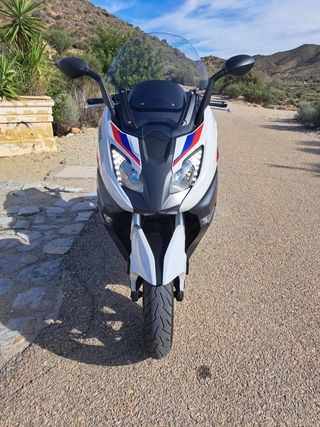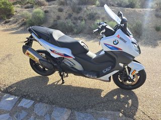 Modelo HP con vinilos Mpower. Luces diurnas automáticas. Cúpula ajustable en altura. Puños y Asiento calefactable. Espacio para 2 cascos integrales. 2200e en extras. Ningún roce ni caídas. 65cv 18000km 2017 Neumáticos diablo rosso scooter nuevos, ABS, ACS y aviso de presión baja de neumáticos. Se vende con escape Akrapovic titanio Homologado valorado en 1000e. Variador Jcosta XRP de 500e, correa nueva Jcosta y cúpula Puig negra. Revisión recién hecha en BMW con recambio original.. T-max, Tmax, ak550, maxiscooter, forza, Adv, kymco suzuki kawasaki, xmax, nmax...