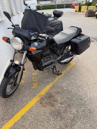 Moto BMW K75RT en color negro, estilo touring. -inyeccion Bosch 750cc 3cilindros k - Maletas laterales incluidas. -tiene unos 90.000km y es del 91 Varían los kilómetros porque la uso. - regalo algunos consumibles como filtros y pastillas brembo. - equipo de ABS se ha quitado y va perfecto sin ABS discos de freno delantero y trasero. Cambiaria por Ducati Monster de 2010 en adelante