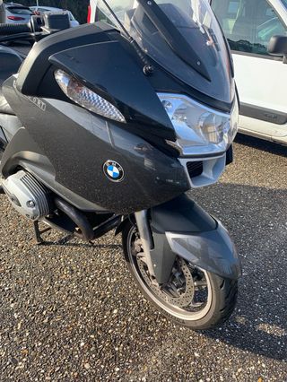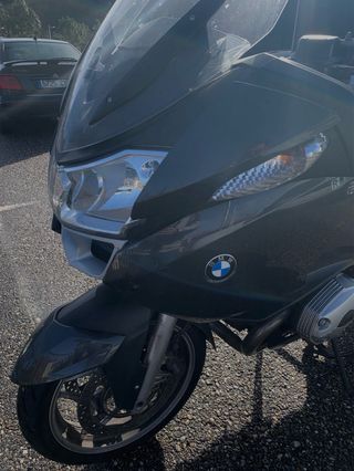 BMW R 1200 RT del año 2006. 127.000 kms. Defensas delanteras y traseras. Faros auxilares. Pantalla LCD navegador para Android y Car play. Bomba depósito de gasolina cambiada. Discos de freno delanteros nuevos. Todas las revisiones al dia. Se entrega escape original. Actualmente está vinilada en negro y gris.