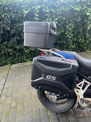 Maletas laterales y trasera originales para moto BMW F 800 GS. - Diseño robusto y funcional. - Acabado en negro mate. - Logo BMW GS integrado. - Solo 4 meses de uso, como nuevas