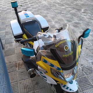 Moto de policía infantil con diseño inspirado en BMW. Ideal para que los más pequeños se diviertan. - Diseño de moto de policía. - Colores blanco y negro con detalles. - Ruedas para estabilidad.