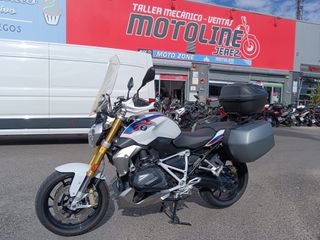 Moto BMW R1250R en color blanco con detalles tricolores , matriculada el 30/11/2020 , con los tres paquetes de bmw , baul trasero y las dos maletas originales de bmw , cupula alta , tienene 53184km , posibilidad de financiar el total de la compra , la entregamos transferida y un año de garantia. - Moto de carretera. - Incluye maletas laterales y baúl trasero. - Parabrisas alto.